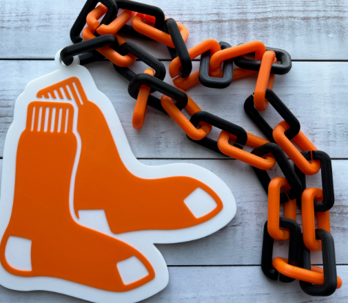 Spirit chains are a really cool way to show off some team spirit. The chains are about 38" long (I wanted them to fit over a head with a hat on). I normally make the logos around 3" tall x 4-5" long, your design will depend on the size.